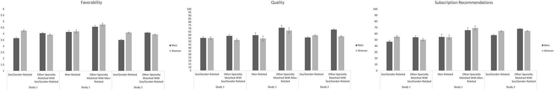 Androcentrism Measures: Favorability, Quality, and Subscription Recommendations