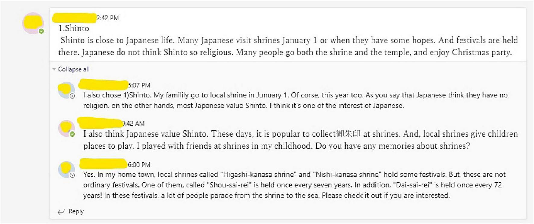 Figure 4. Asynchronous discussion board. Microsoft and Microsoft Teams are trademarks of the Microsoft group of companies.