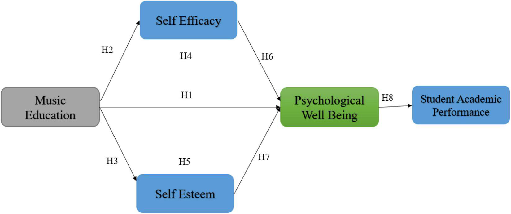 H6. Self-efficacy mediates between music education and psychological wellbeing.
