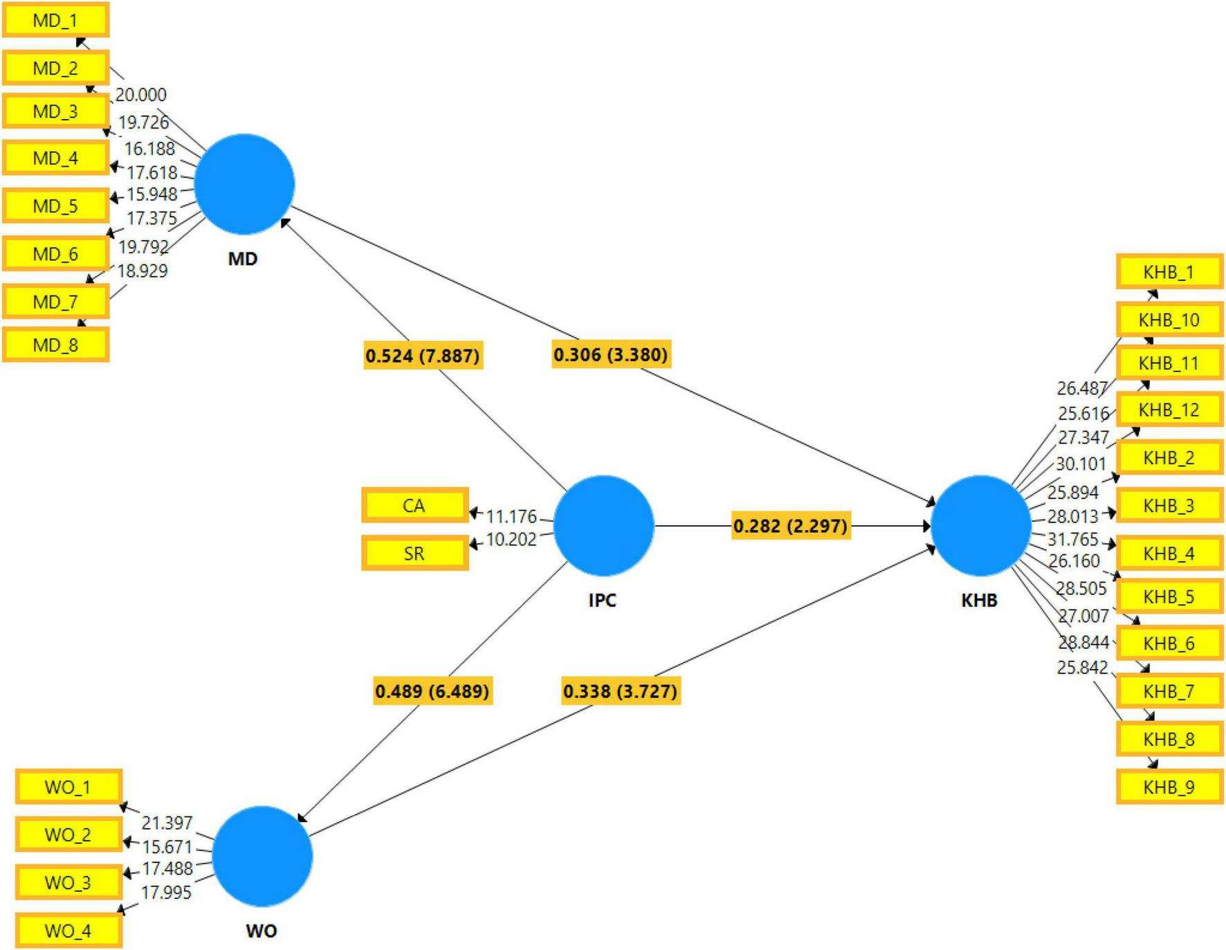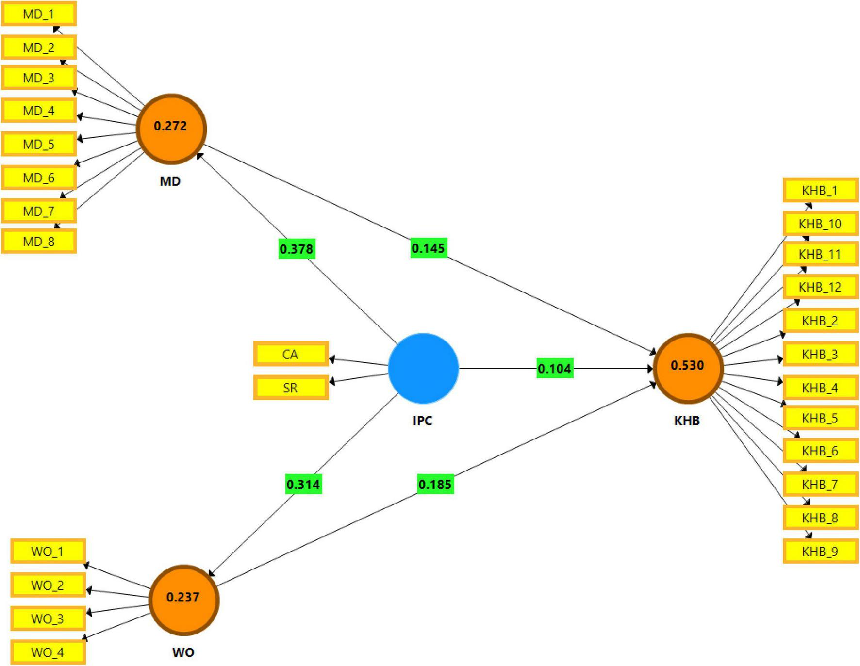 The measurement items of interpersonal competition were adopted from the study of Lee (2020), measurement items of KHB adopted from the studies of Nguyen et al. (2022). Further, the measurement items of MD and WO were adopted from the studies Moore et al. (2012) and Karatepe (2013), respectively.