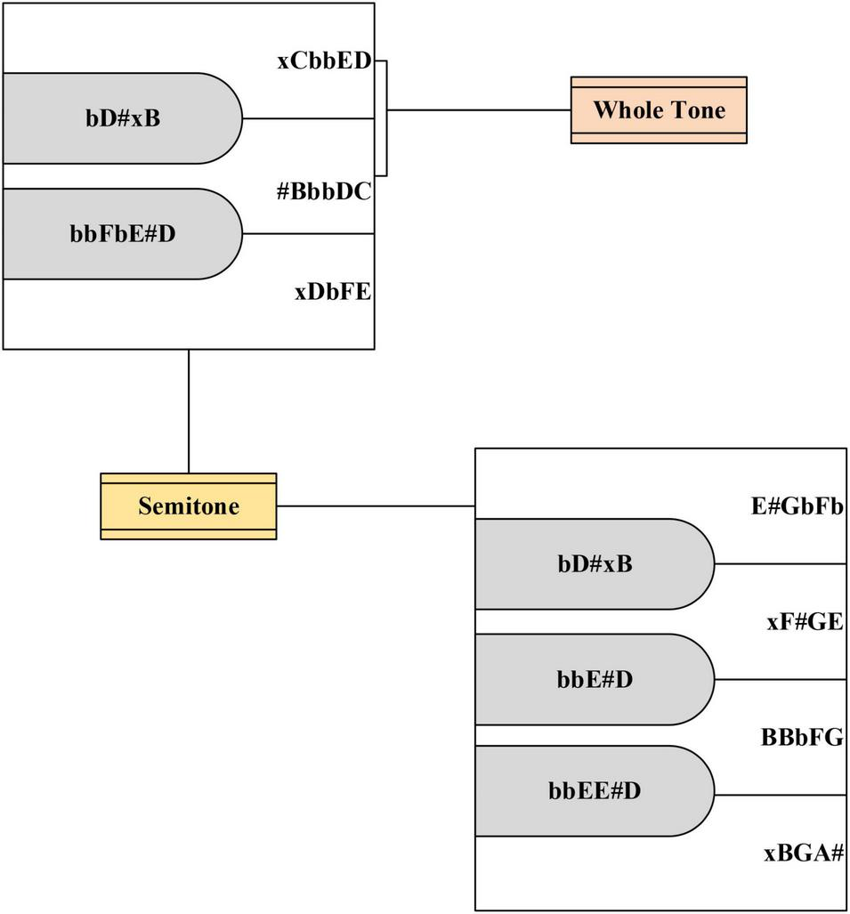 In music, the pitch distance between two notes or scale steps is called an interval (Chen et al., 2019). An octave interval is divided into twelve kinds, each of which is called a semitone. C, D, E, F, G, A, and B correspond to 0, 2, 4, 5, 7, 9, and 11, respectively. Then, the interval can be obtained according to Eq. (1).