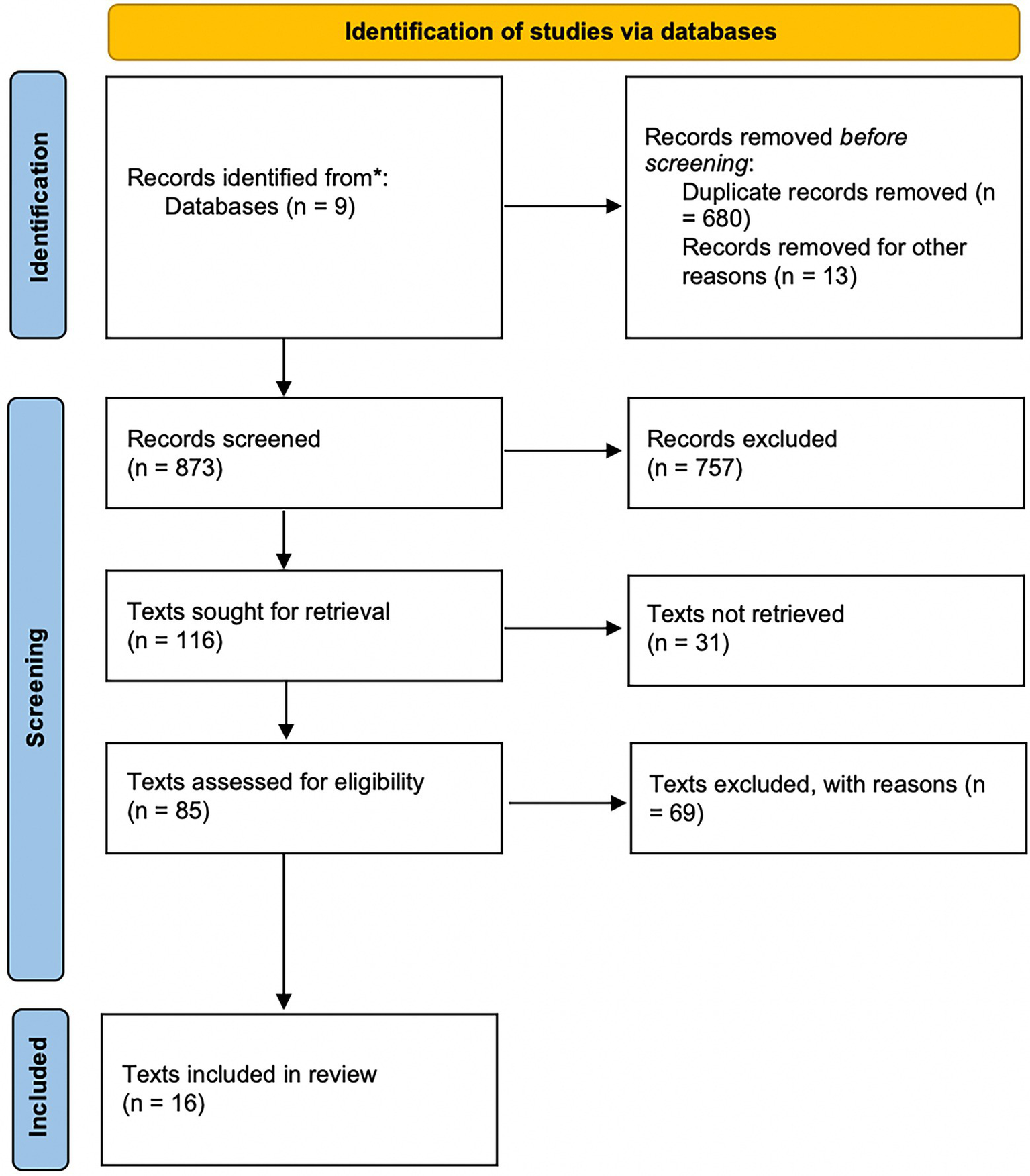 PRISMA diagram of reviewed texts (Page et al., 2021).
