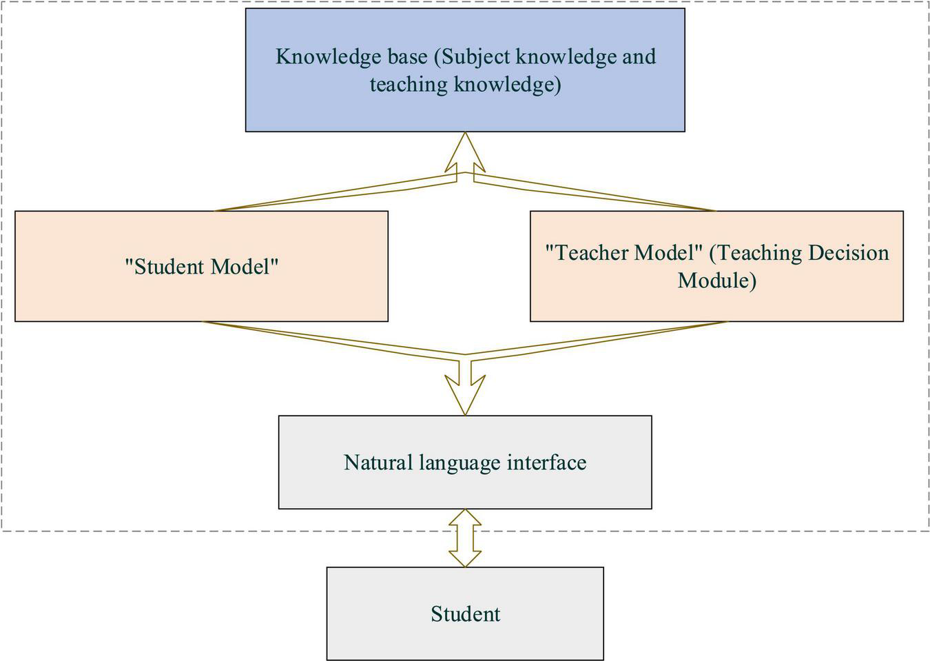 As shown in Figure 1, in the traditional teaching modes, teaching is mainly conferred through lectures or on-board notes, is straightforward, and involves no multimedia elements. In CAI mode, multimedia elements and computer and network technologies visualize classroom teaching, realize teacher-student interaction, and make learning more interesting (Yuan and Wu, 2020). At the same time, aside from imparting knowledge, teachers focus more on encouraging students’ participation in classroom activities and boosting their learning enthusiasm. Further, with the integration of Artificial Intelligent (AI) in education, Institute for Computer-Assisted Information (ICAI) analyses the characteristics and processes of students’ learning and thinking. ICAI aims to promote the intelligent development of the cognitive learning mode and teaching process (Zhang, 2021). Figure 2 is the basic structure of ICAI.