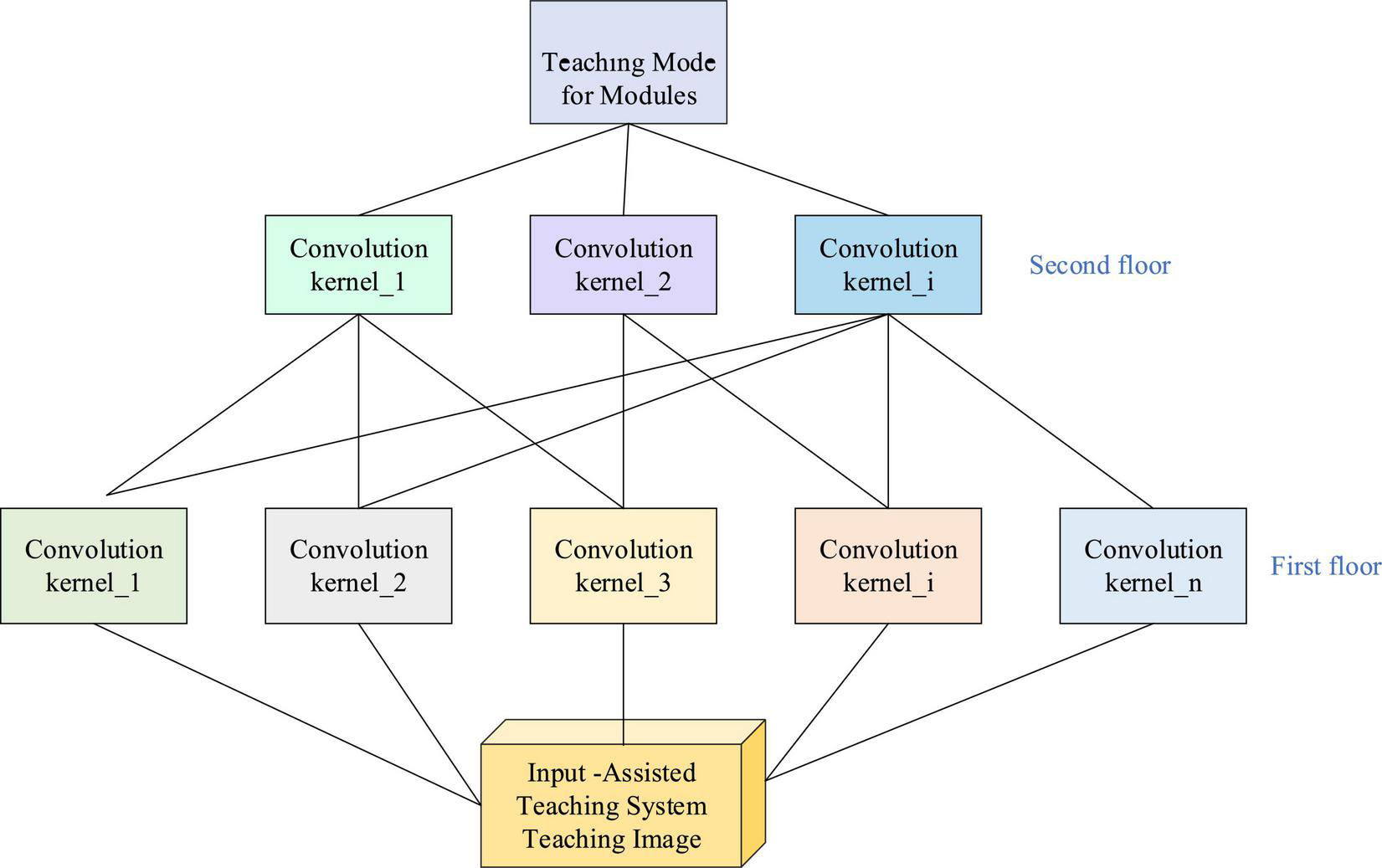 Figure 5 shows the pattern space hierarchy of the CNN-based CAI system. The first convolution layer will learn smaller local patterns. The second convolution layer will learn larger patterns composed of the features of the first layer. Iteratively, the next deeper layer will learn larger patterns of the features of the previous layer. The higher the number of levels, the more comprehensive learning features are. After learning, the response of different convolution kernels to different characteristics changes. Finally, the step-by-step implementation module is obtained for the CAI model. The CNN architecture is applied to the CAI model. Based on the main functions and theories of the CAI, the technical support and theoretical characteristics associated with DL are explored. The theory of DL is refined according to the actual teaching needs, which has practical reference value for improving the IEE of Music Majors.