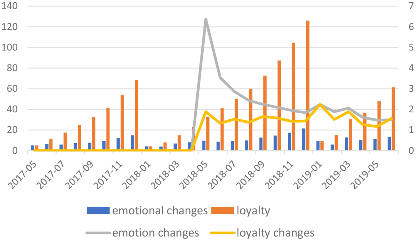 The online reviews of the four brands were extracted and the perceived functional value, perceived symbolic value and emotional value were calculated according to the fuzzy calculation steps, and the results of the calculations obtained by the fuzzy inference system according to the consumer brand loyalty inference rules are shown in Figure 2. From the data analysis we can see that, the perceived functional value of the other three brands has a positive correlation change with price. The higher the price of the product, the higher the perceived usefulness of the product, i.e., the performance of the cosmetic. This confirms the common saying that “you get what you pay for”. However, for products that do not vary much in value at the same price, consumers perceive a different change in functional value. This also shows that consumers' perceived value of the brand is not a single trade-off of interest. According to the rules of emotion lexicon construction, the dynamic emotion words, value evaluation words and emotion modification words in the reviews conforming to the rules of fuzzy corpus were extracted by manual and Matlab2014a data pre-processing, and the extracted words were semantically analyzed, and then the emotion words of 8 cell phone brands were extracted for attribute classification by manual analysis, screening and noise removal.