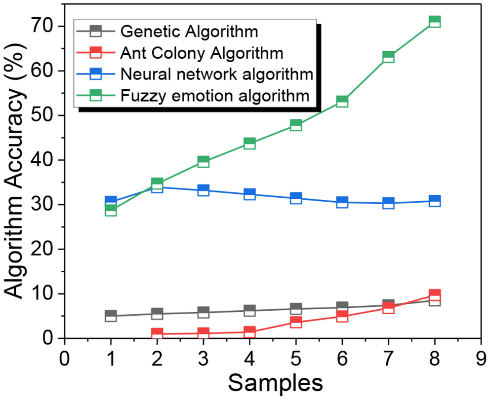 When making intelligent judgments and responses to the environment, image clustering and fuzzy algorithms based on emotion computing can be used to improve their efficiency in processing complex environmental data. Currently, most of the intelligent computing models use distributed computing methods, and the data sources of distributed computing are not uniform. The emotion modules obtained using computer systems need to be expressed with the help of machine language, and programming techniques are used to efficiently execute the machine language, which is the focus of the design of intelligent recognition models for emotion computing. AML (Avatar Markup Language) is an XML-based multiform scripting language, which has a simple structure, is easy to understand, and has good compatibility with various software, and can be used to successfully implement the expression of emotions in the environmental factors of picking operations. To realize the intelligence of the picking robot it is not enough just to use a simple machine language, but also with the help of intelligent algorithms. A good model of intelligent algorithm is the fuzzy c-mean clustering algorithm (FCM), which is a relatively simple procedure. This algorithm can classify data intelligently based on the affiliation of the collected data, and is an improvement of the hard c-mean clustering (HCM) method, first proposed by Bezdek. FCM algorithm uses the fuzzy grouping method, divides n vectors Xi (i = 1, 2, ..., n) into c groups, and finds the cluster center of each group, and the affiliation matrix u is allowed to have elements that take values between 0, 1. By normalization, it is specified that the sum of the affiliation degrees of a data set is always equal to 1. The expression is: