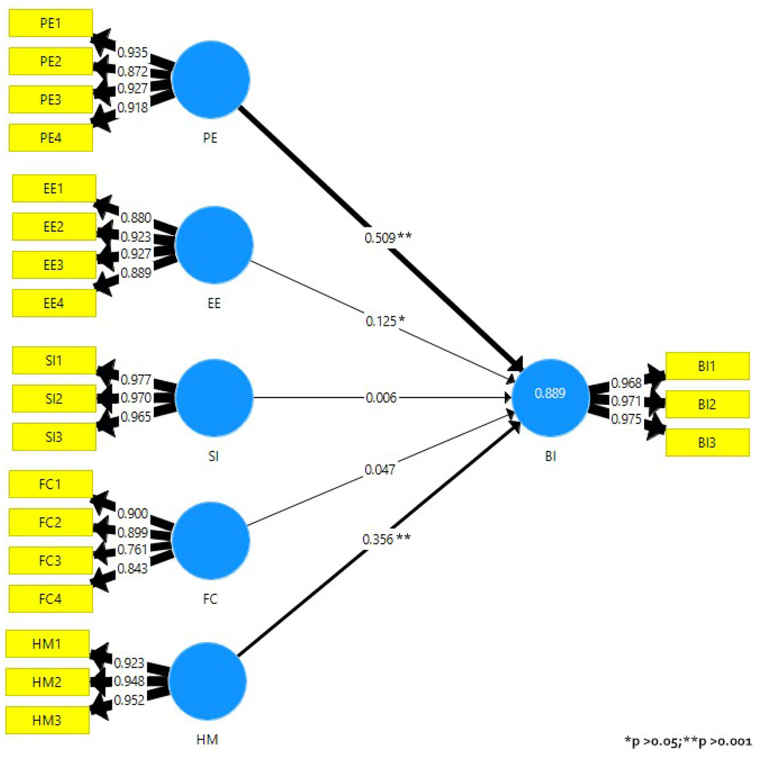 UTAUT2 survey items.