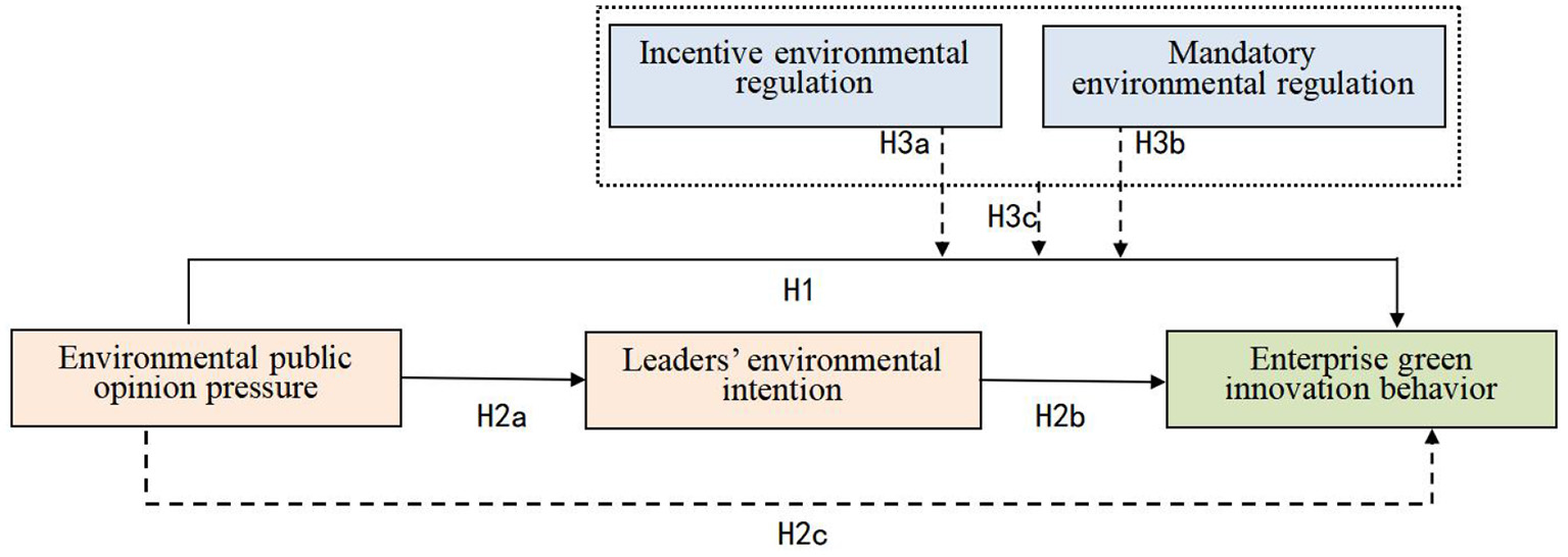 H2c: Leaders' environmental intention has a mediating effect on the relationship between environmental public opinion pressure and enterprise green innovation behavior.