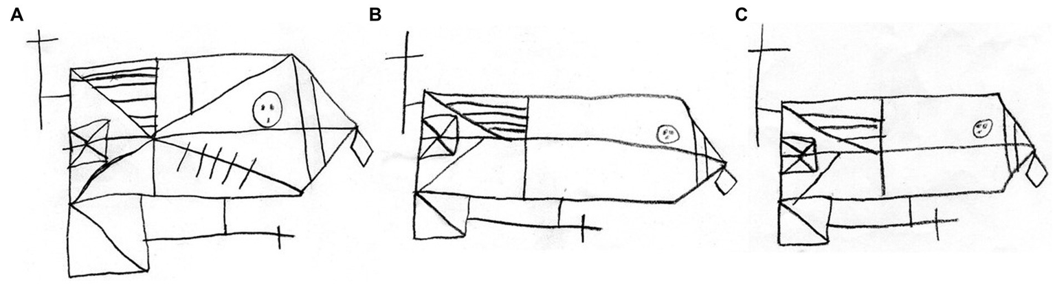 The Japanese version of the attention deficit hyperactivity disorder (ADHD) Rating Scale-IV (Ichikawa and Tanaka, 2008) was conducted for screening for ADHD. For this questionnaire, SJ’s mother was the informant. SJ’s scores met the criteria to rule out the possibility of ADHD (his ADHD-RS total score = 13, his inattention subscale score = 9, and his hyperactivity-impulsivity subscale score was 4). Moreover, the imitation of hand and finger postures in the Standard Performance Test of Apraxia (Japan Society for Higher Brain Dysfunction, 1985) was used to assess SJ’s fine motor movement. Specifically, SJ was asked to see a tester’s fingers and make the same shapes (e.g., fox and pigeon). In addition, he was asked to quickly open and close the left and right hands alternately five times. He showed no clumsiness on these tests. Thus, SJ likely had neither ADHD nor clumsiness.
