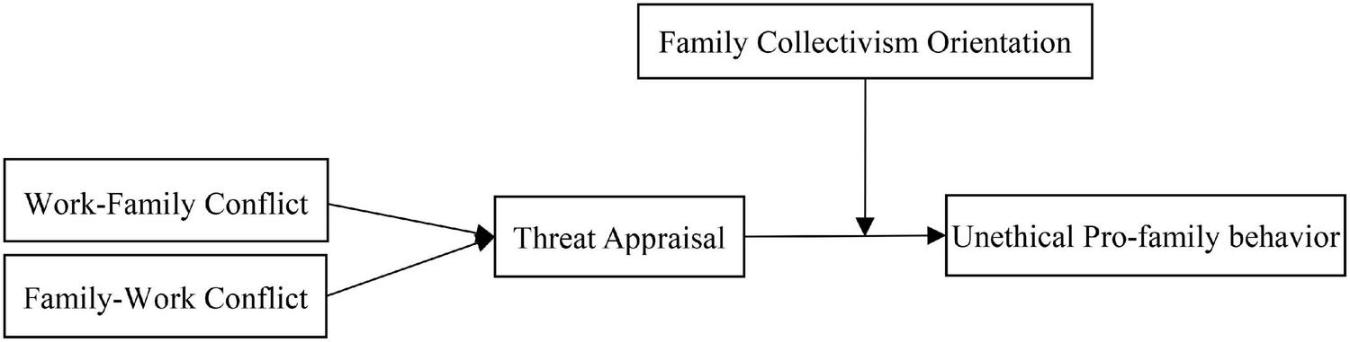Li M, Zhang L, Zhang Z and Hai X (2022) Work-Family Conflict and Unethical Pro-family Behavior: The Mediating Effect of Threat Appraisal and the Moderating Effect of Family Collectivism Orientation. Front. Psychol. 13:951904. doi: 10.3389/fpsyg.2022.951904