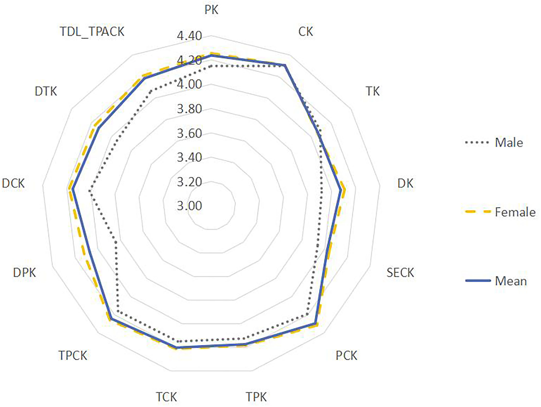 | TPCK | Technological pedagogical content knowledge | 4 | 0.93 | I can appropriately combine teaching content, technology and teaching methods to instruct student. | |