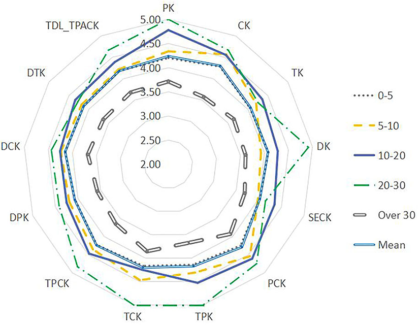 | DPK | Data based pedagogical knowledge | 4 | 0.95 | Jian, 2020 | I have the ability to process and analyze educational data, and can interpret data visually. |