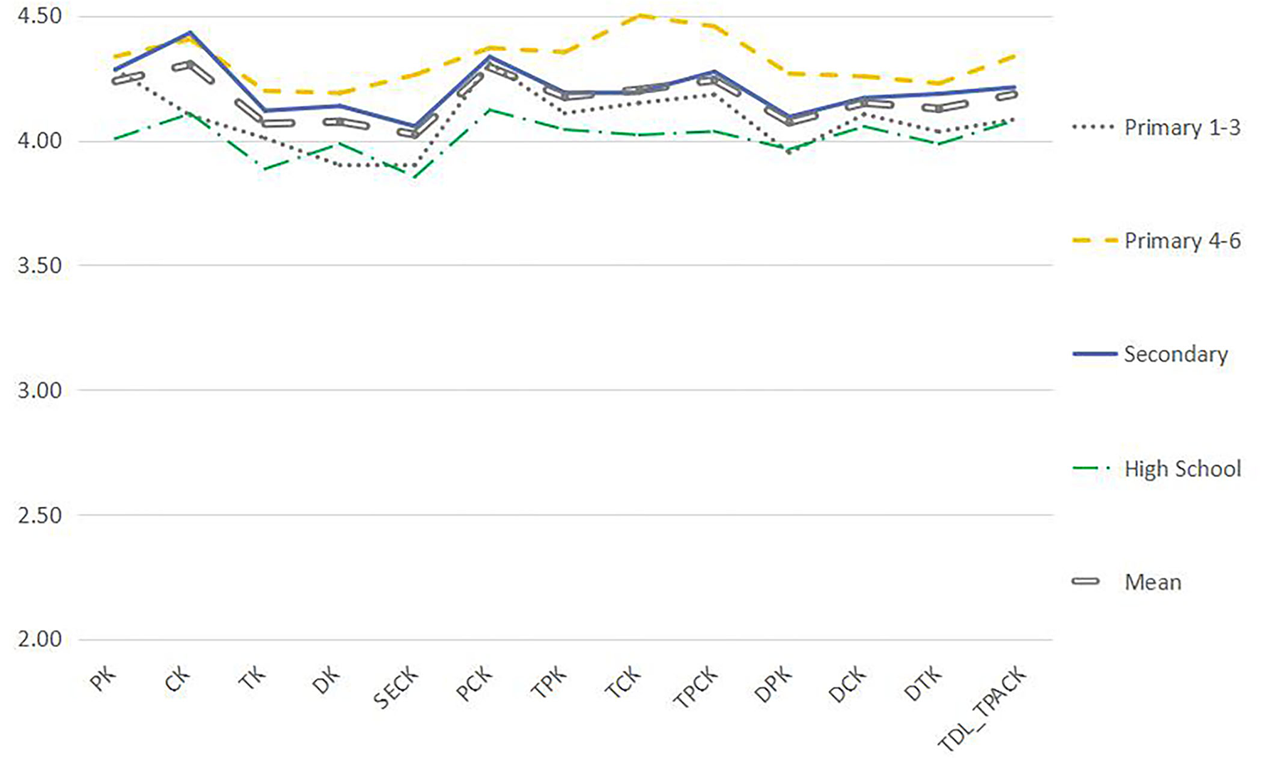 | TPK | Technological pedagogical knowledge | 4 | 0.88 | I can apply the technology to different teaching activities. | |