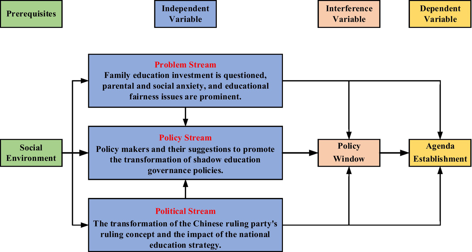 Compared with the stream of problems and the stream of policies, the political stream, especially the transformation of the existing governance concept, has played the most important role in the introduction of policies, especially the transformation of China’s shadow education governance policy to a mandatory normative approach.