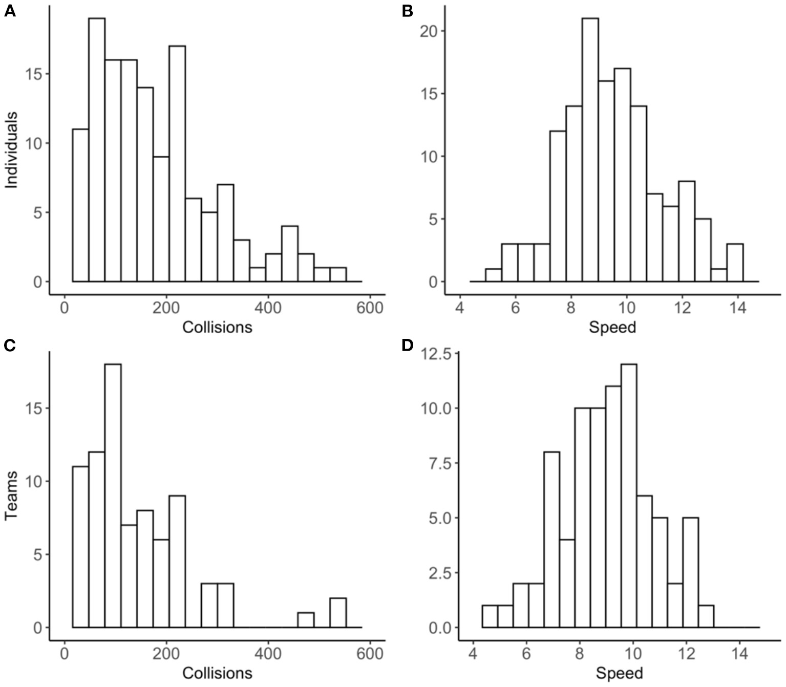 Hypothesis 1a-b: Teams would have fewer collisions (a) and drive slower (b) than individuals in the normal condition.