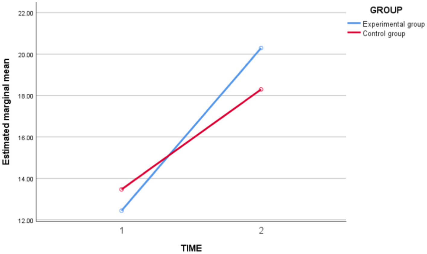 Figure 4. Schematic diagram of the changes in cooperation ability between the experimental group and the control group before and after the intervention.