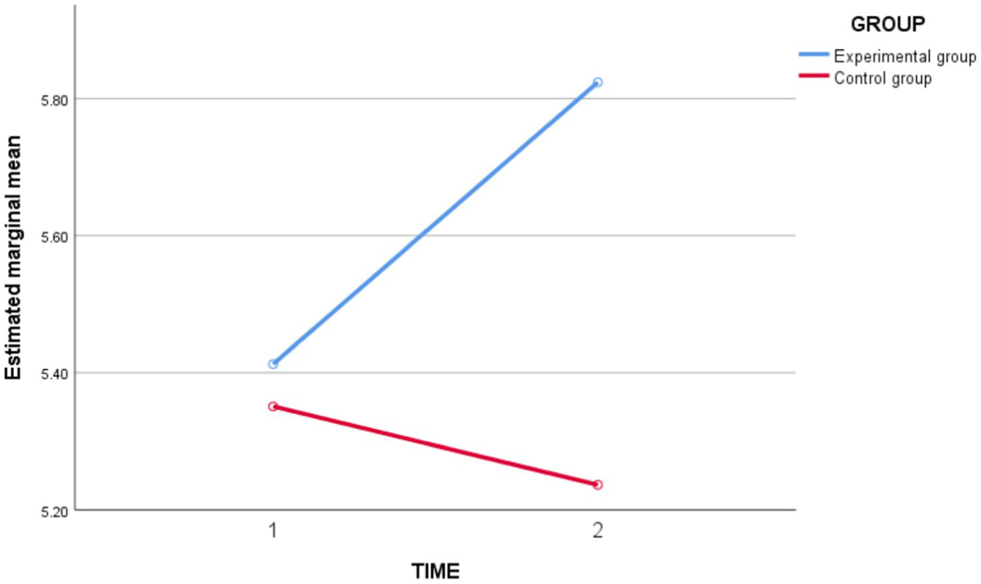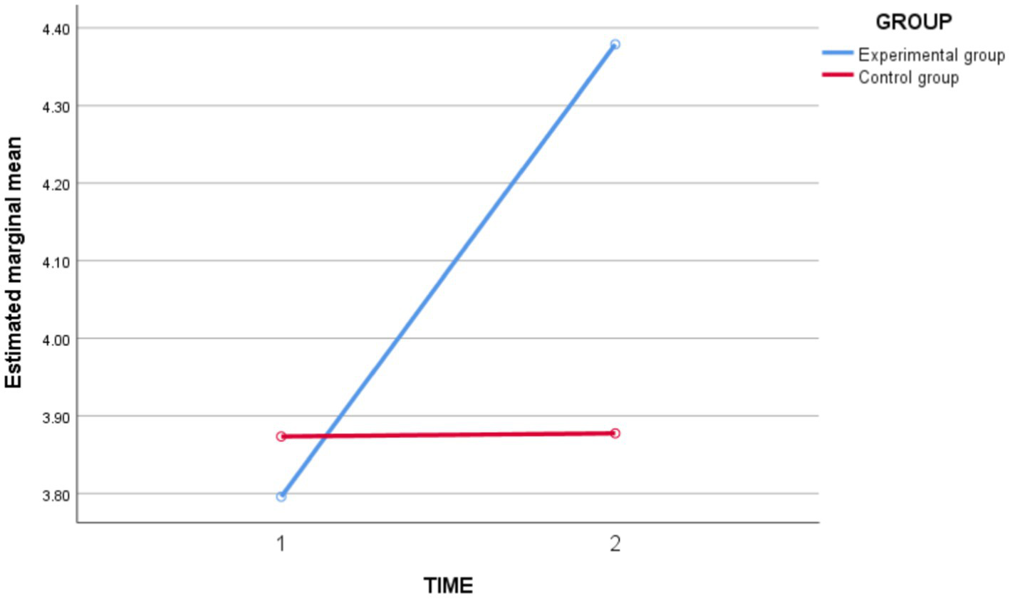 Figure 3. Schematic diagram of changes in study engagement on the experimental group and the control group before and after the intervention.