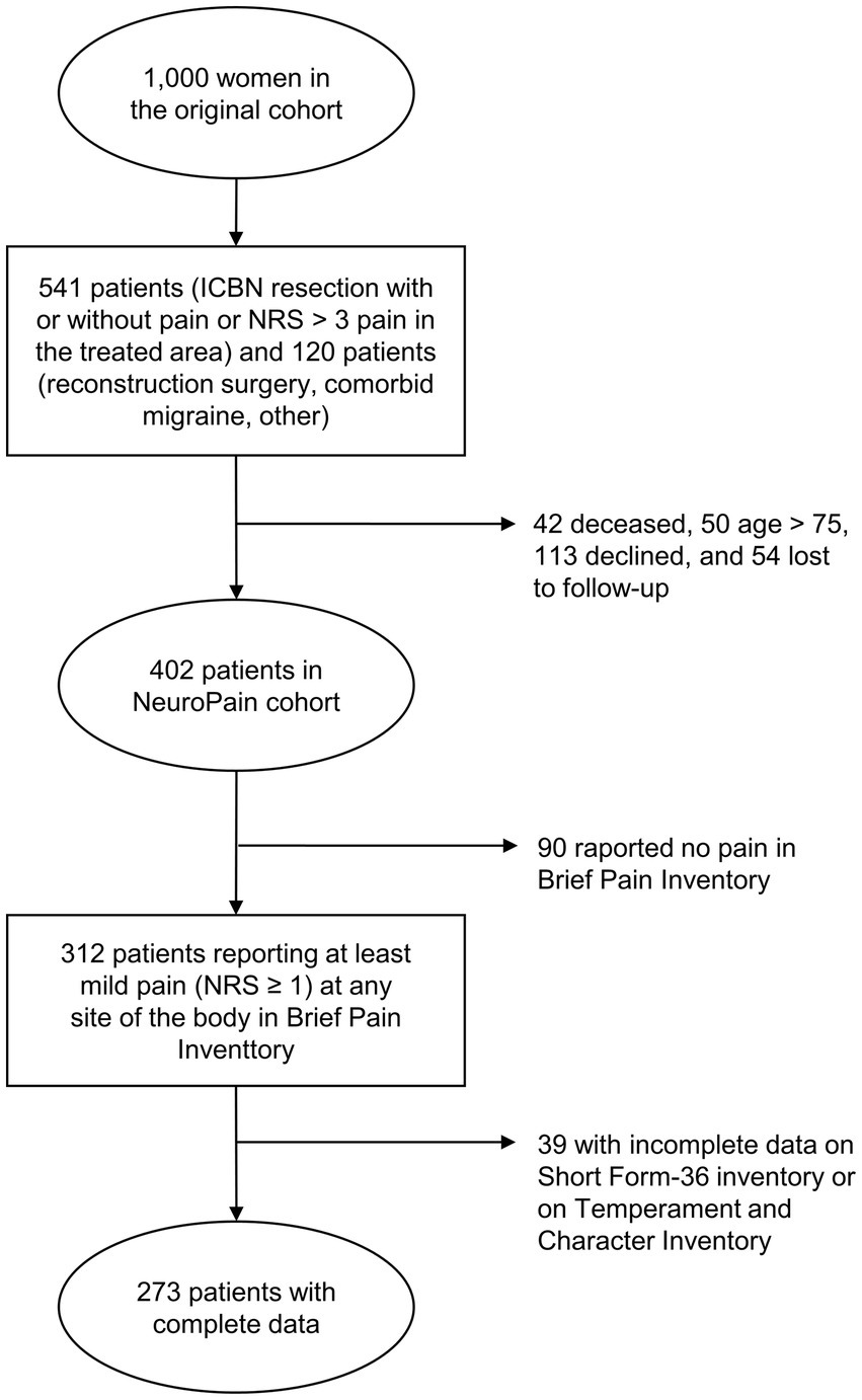 Figure 1. Flow chart of the patient recruitment. ICBN, intercostobrachial nerve; NRS, numerical rating scale.