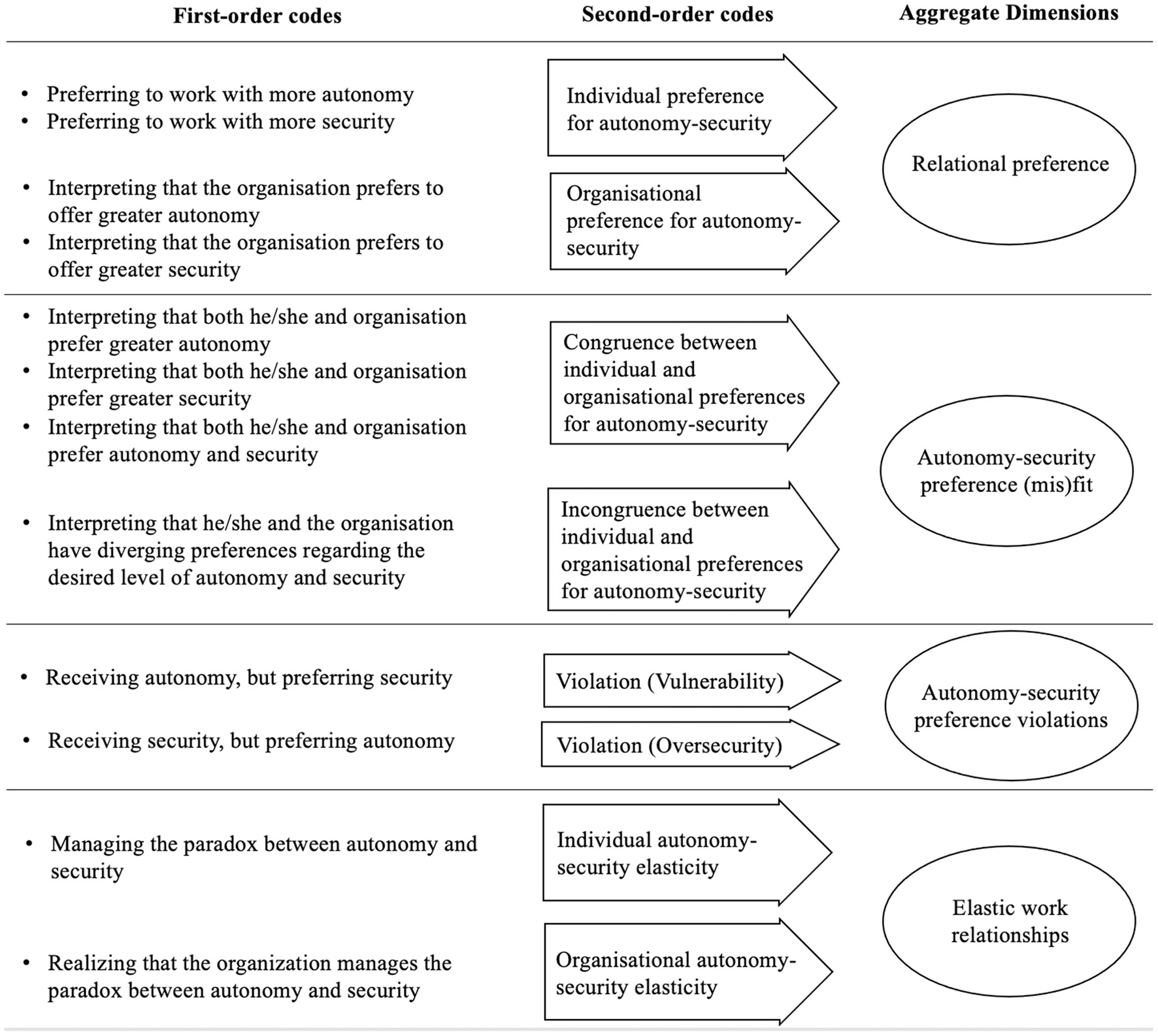 Thus far, we have developed the argument that individuals and organizations tend to prioritize security or autonomy in their employment relations (Berger et al., 2019) and that the fit between their preferences would lead to more positive results for both (Cable and Judge, 1996). However, security and autonomy do not necessarily need to be seen as a choice to be made or, in other words, a dilemma. Adopting the lens of paradox theory (Smith, 2014), an individual or an organization can understand that security and autonomy, despite the tension between them, have a relationship of interdependence. In this case, instead of a dilemma, both values would be seen as a paradox, which are contradictory and interrelated dualities that exist simultaneously and persist over time (Smith and Lewis, 2011; Felix, 2020).