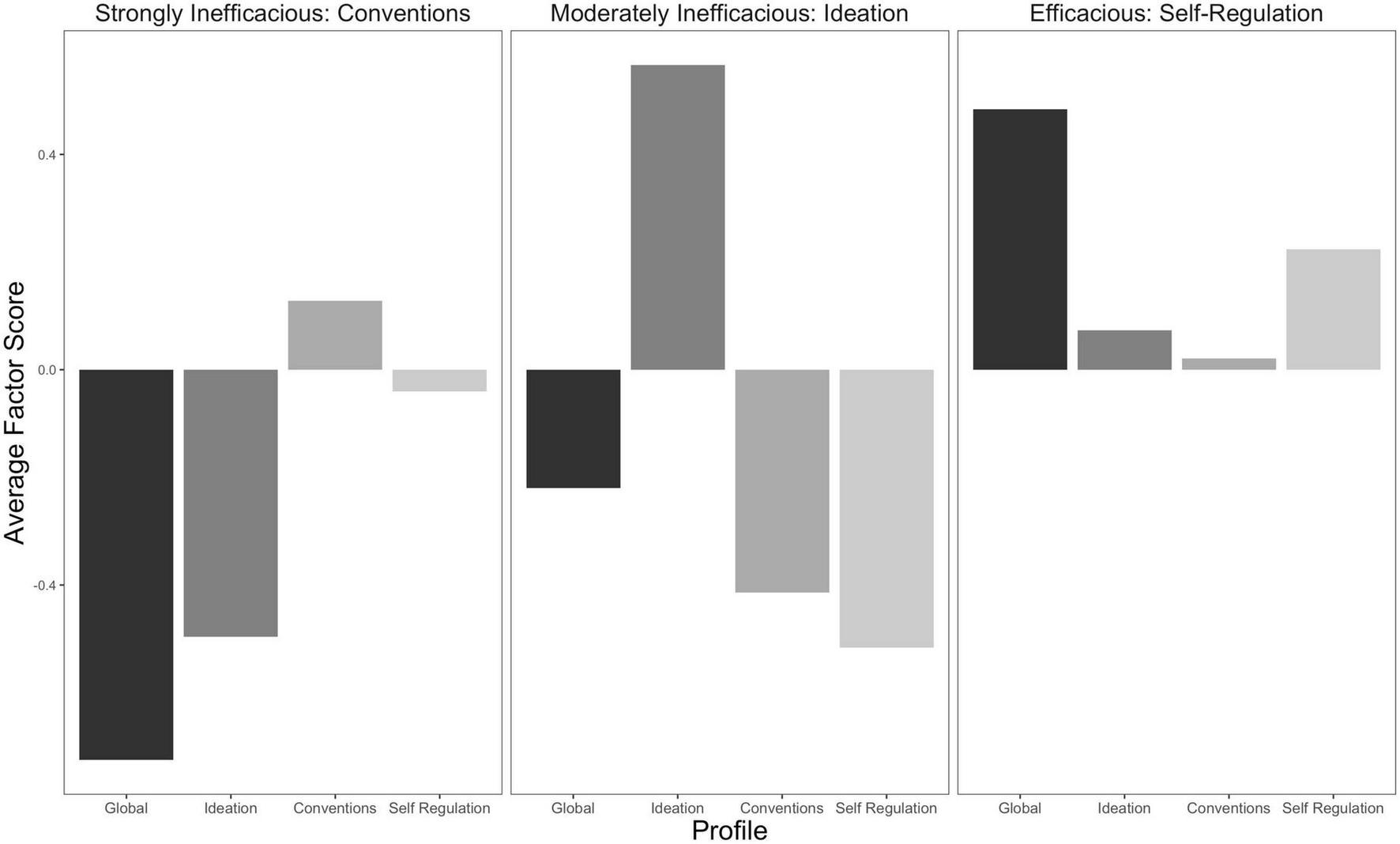 We used factor scores derived from the best fitting variable-centered measurement model in the person-centered approach. Factor scores were derived from Mplus (Muthén and Muthén, 1998–2017). This process will model qualitative differences between profiles over and above any globally held attribute of writing self-efficacy, while also providing clarity of Global (G)-factor differences between profiles.