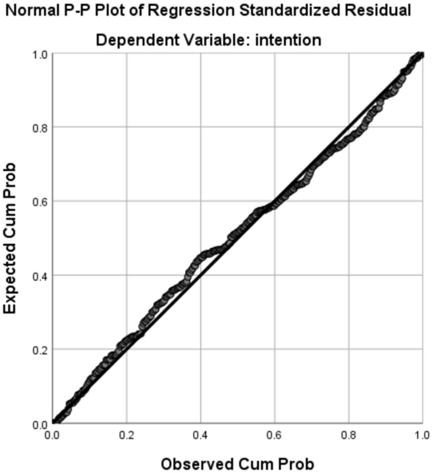 To ensure that there was no multicollinearity between the variables, multicollinearity diagnosis was performed. As shown in Table 8, the VIF values were all less than 5 (Mansfield and Helms, 1982). Additionally, the residuals followed a normal distribution as shown in Figure 1. The Durbin-Watson value was around 2, which satisfies the recommended value (Farrar and Glauber, 1967). Therefore, we concluded that there was no multicollinearity between our independent variables and our findings are reliable.