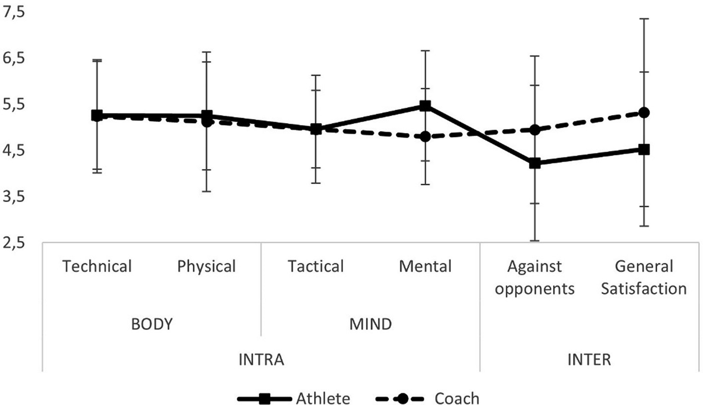 Figure 3. Comparison of perceived intra- and interpersonal performance between Paralympic athletes and their personal coaches.