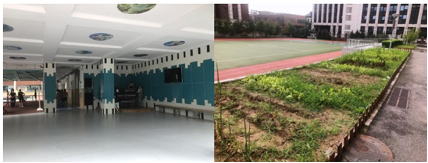 Multimodal learning involves various environments, resources, and tools. Schools providing LtP are personalized and fun venues that do not merely offer a production-line approach to learning. The interviewed teachers reported that their schools had many multi-functional classrooms to encourage children's LtP, which involved calligraphy, handicrafts, STEM, cartoons, dancing, and robots. Student A described his school, the Beijing Longyue Experimental Middle School, as a “gamified fairyland.” At this school, children could build “future towns” with farms, bazaars, tokens, and other gamified elements. Students could even plant crops on farms. At another primary school in Wuhan, the school hall was decorated in a “piano” style and had a piano in it that students could play when they wanted to. Figure 4 shows the Piano Hall and a farm self-managed by students in a “future town.”