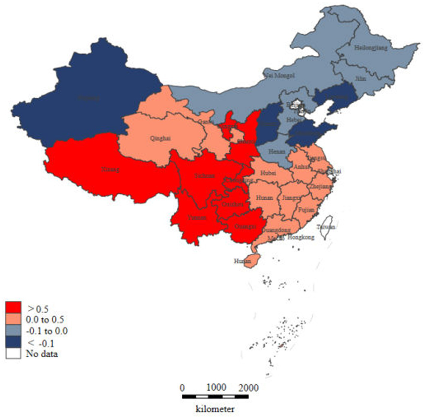 Changes in rural PMS density between 2010 and 2020. The data were collected from China Health Statistical Yearbook 2011 and China Health Statistical Yearbook 2021.