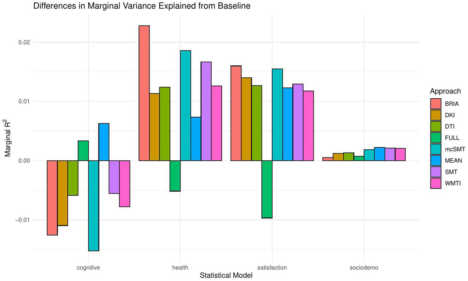 Marginal R2 values for statistical models across diffusion approaches.