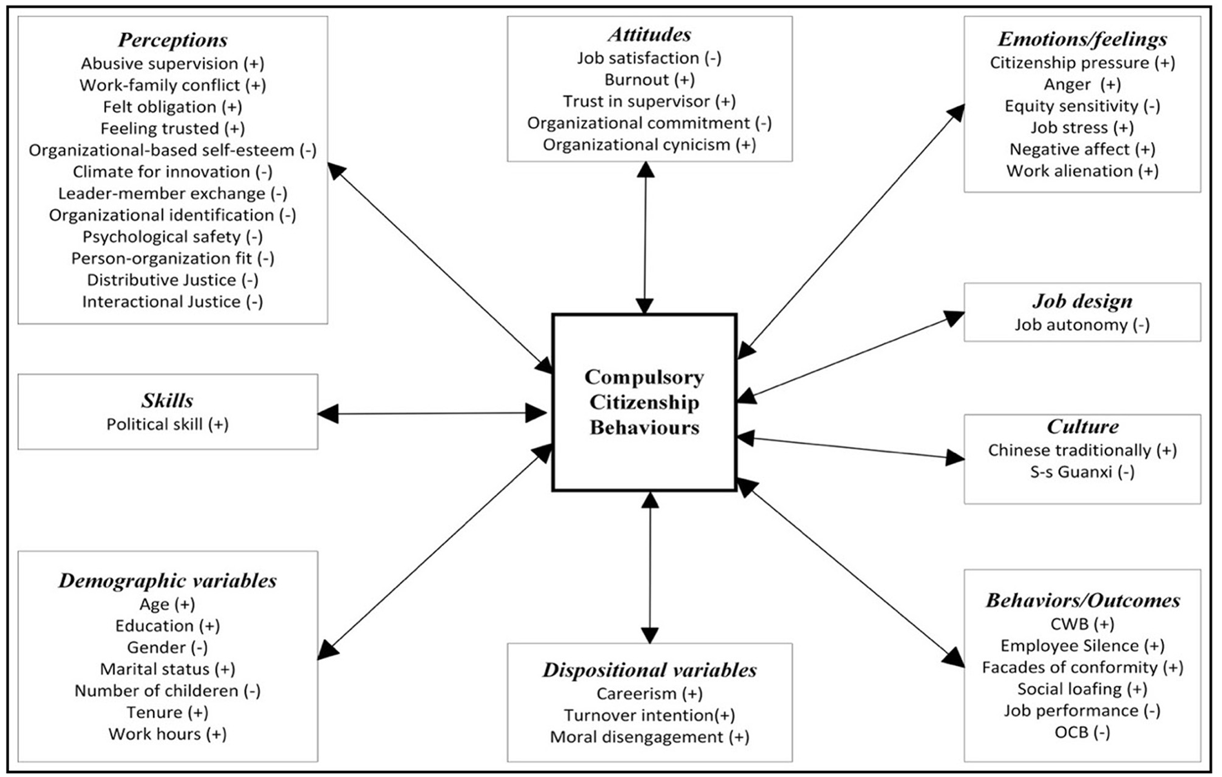 In sum, we found solid cumulative evidence that CCBs are a harmful and undesirable phenomenon for employees and organizations. Also, positive correlations of felt obligation, feeling trusted, and organization-based self-esteem with CCBs, showed that, contrary to general acceptance, positive factors could also cause CCBs. Lastly, we found CCBs as a dominant phenomenon in eastern culture.