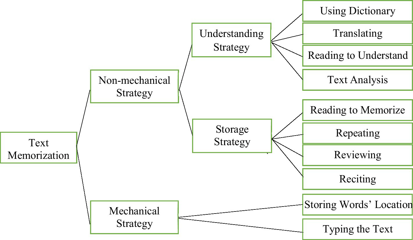 Yu, 2013), but few studies have been conducted to reveal the relationship between text memorization and EFL learners’ writing proficiency. Furthermore, it has been revealed in previous studies that understanding, which is involved in the process of memorization, makes EFL learners with Asian cultural backgrounds active learners rather than rote memorizers. However, little is known about how text memorization proceeds when understanding is engaged in the process of text memorization. In addition, the majority of existing research is centered on the strategies of vocabulary memorization, and few studies have attempted to present a system for text memorization strategies that EFL learners apply in their processes of memorizing complex and consecutive text. Therefore, the findings of this study fill the gap by answering three questions:
