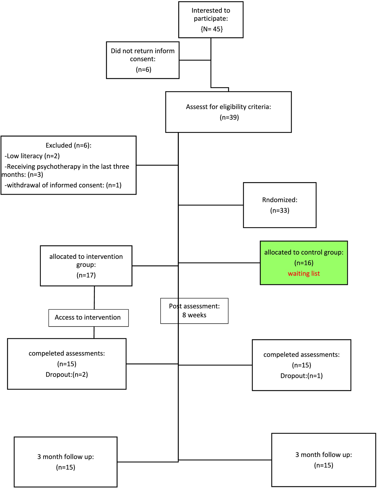 In order to comply with research ethics, people were informed about the research objectives, treatment method, the right to withdraw from the treatment process and the confidentiality of information and then completed the informed consent form. Written informed consent was obtained from the individuals for the publication of any potentially identifiable images or data included in this article.