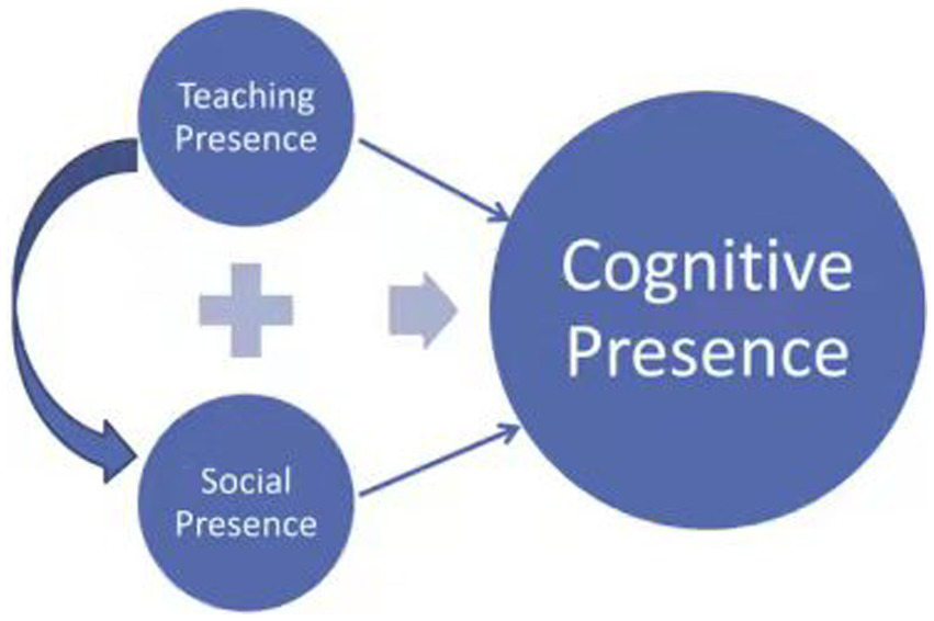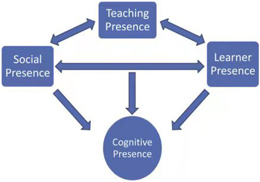 In terms of social presence, it refers to the learners’ capacity to present themselves as genuine individuals, both socially and emotionally, within the CoI. This area has been the subject of extensive research (Turk et al., 2022), with results emphasizing the degree to which video communication is likely to exert larger impact on social presence. Consequently, social presence has received the most attention among the three presences and has been notably linked with learning outcomes and learner satisfaction (Garrison and Arbaugh, 2007).