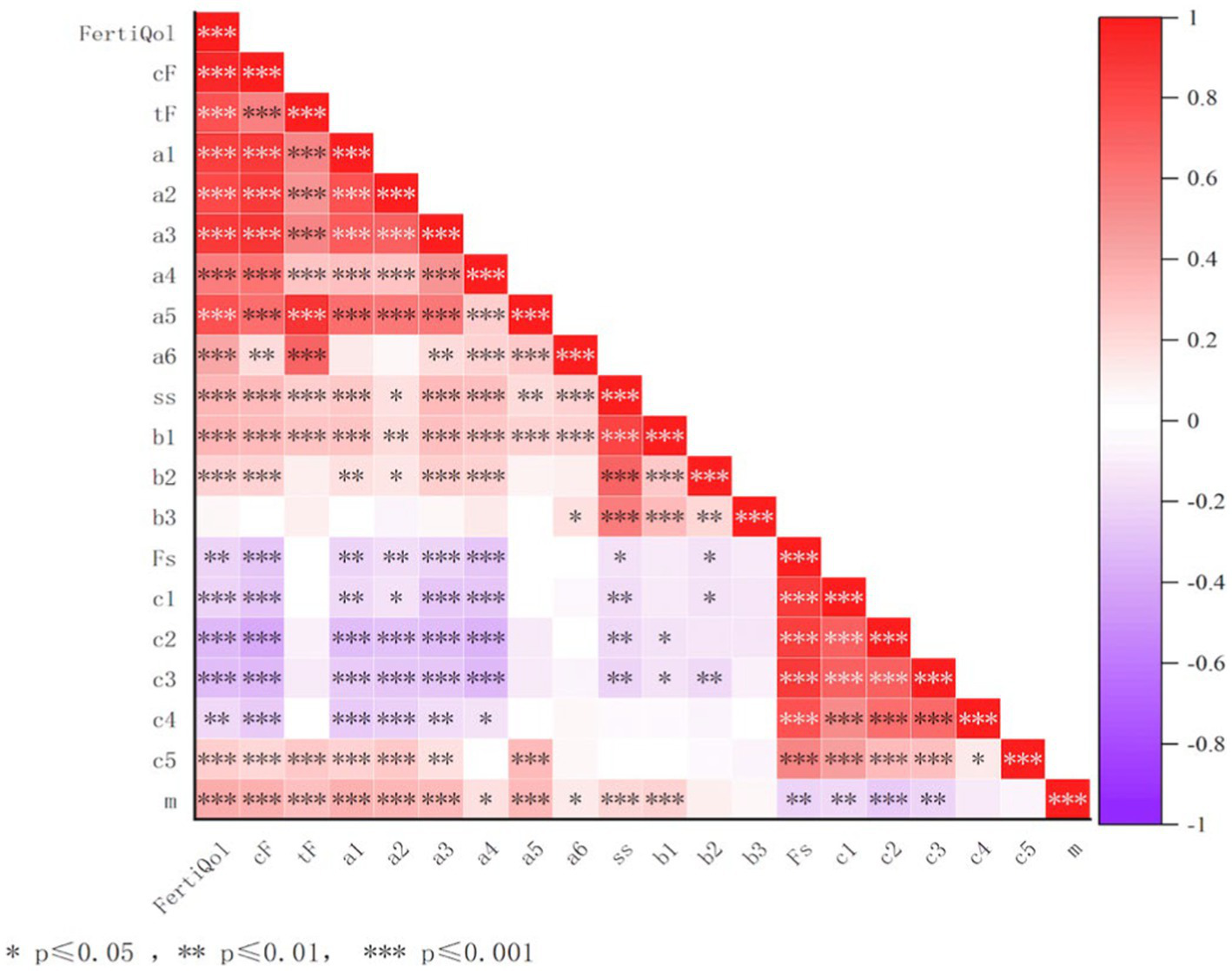 The concept of “quality of life” is defined by the World Health Organization as “a person’s perception of the culture and value system in which they live in life, and their relationship to their goals, expectations, standards and concerns” (Warchol-Biedermann, 2021). The fertility quality of life refers to the individual’s perception of their place in life within the fertility and treatment environment that men are exposed to Jing et al. (2020). Quality of life is an important part of the survival status of infertile patients, and is also one of the hot areas of concern for fertility medicine researchers (Ca and Cristiana, 2013). Men with primary infertility scored significantly lower in the emotional, physical, and social domains, indicating a poorer quality of life. For example, the quality of life of Japanese men is significantly higher than that of Turkish men. This may have an important correlation with the improvements in Japan’s infertility treatment system and social subsidies, while in Turkey, Iran, and other Middle Eastern countries, the lower level of quality of life of male infertility patients might be closely related to their traditional culture (Ahmadi et al., 2011).