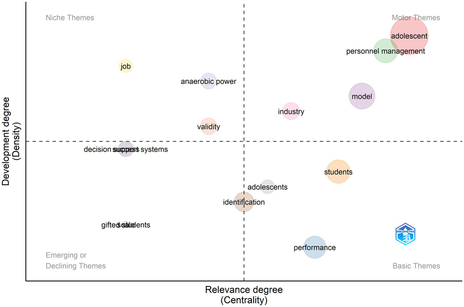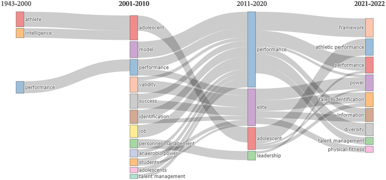 To date, a few bibliometric studies related to TI have been published. These studies have approached TI at the subdiscipline level: for example, Zheng and Liu (2022) examined research in physical education and identified the highest performing researchers within the field, by noting their number of citations and relative influence. Another study focused on a highly niche topic in sports science that investigated the relative age effect by which biases in talent selection exist due to the distribution of individual birth dates (Bilgiç and Işın, 2022). This prior work emphasized the role of timing and universal screening in TI as well as the effects of individuals’ age and readiness to receiving talent development support (Bilgiç and Işın, 2022). Another example within a restricted discipline focused on the integration of talent and labor management (Barkun et al., 2020). Barkun and colleagues addressed the use of the term talent within the labor market field, identifying the use of talent as a synonym of human capital rather than only an expression of high performance.