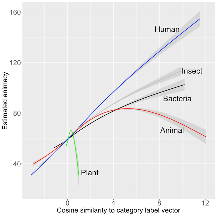 In the second model, this categorizing feature of word embedding models is used, by building models of the human ratings based on the distance from the vectors of the names of categories of unambiguously animate things.