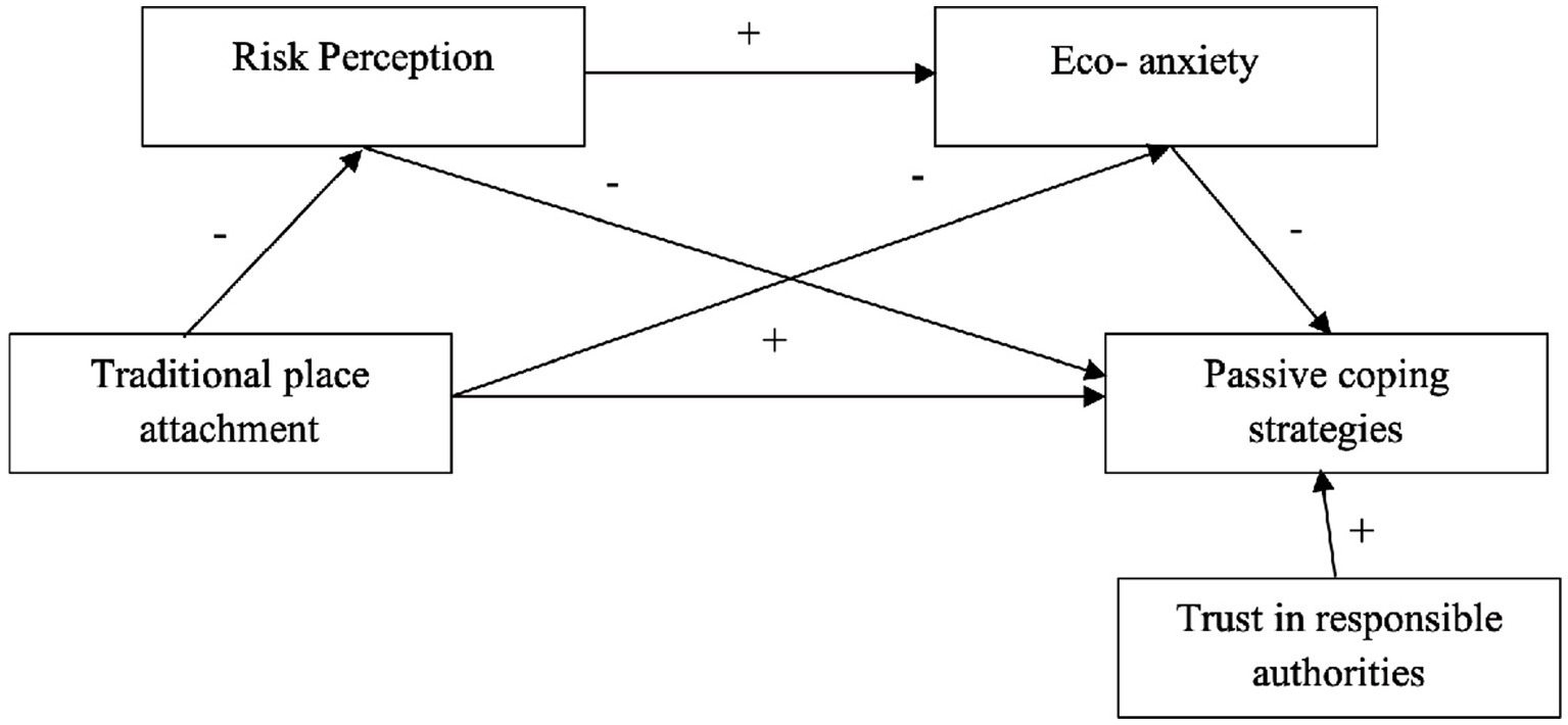 The present study focused on the sequential relationships between active and traditional place attachment, risk perception, eco-anxiety, and coping strategies. More specifically, this research sought to contribute to the existing literature by addressing the following questions:
