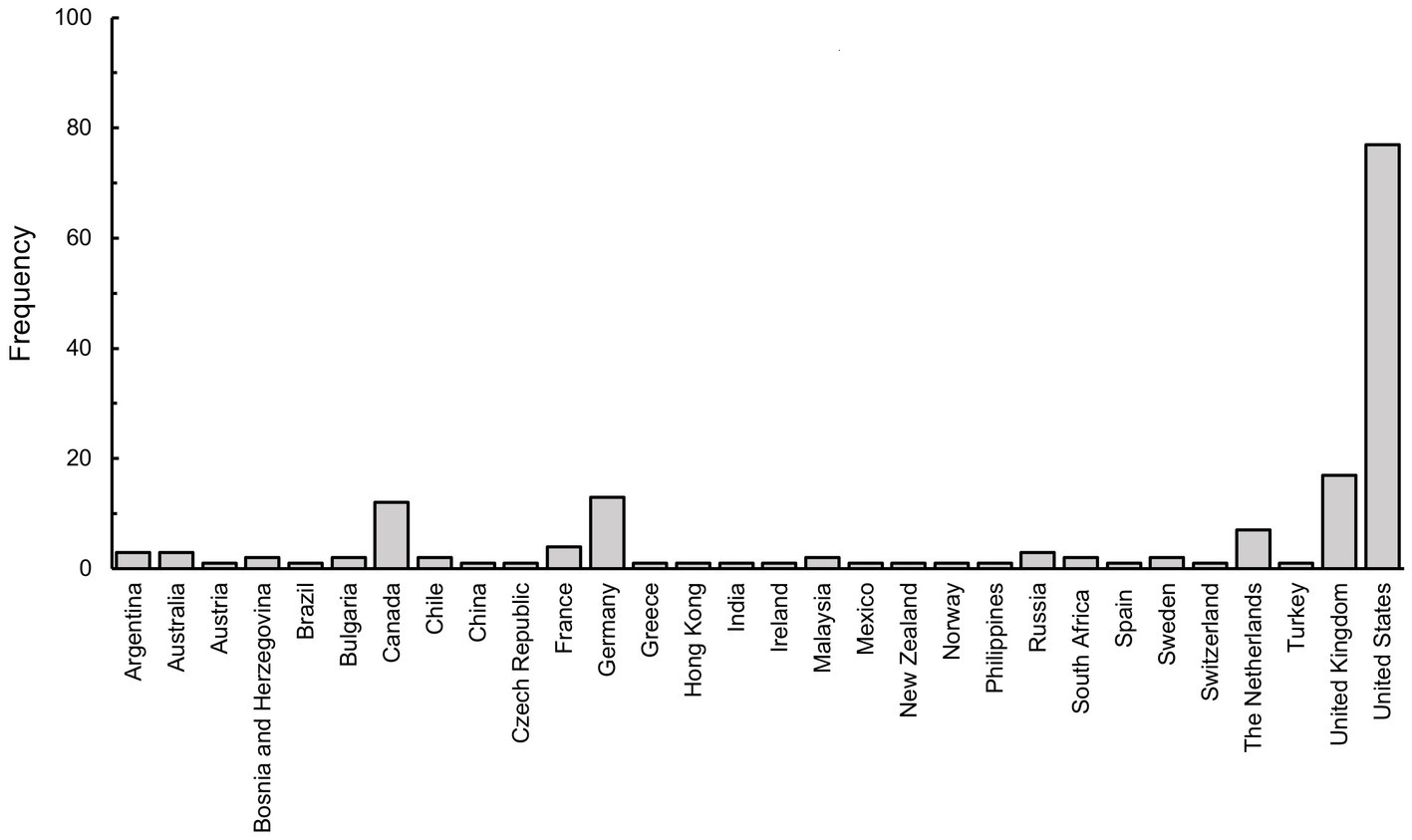 The study was conducted in December 2021, as many countries, and especially those providing the biggest sample, had lifted their COVID-19 lockdown restrictions for the holiday season. Therefore, this study instigates the impact of video games post-lockdown. As seen in Figure 5, the United States was the most frequent country of origin in our sample (77 participants, 46.3% of sample). This was followed by the United Kingdom (34 participants, 20.4%), Canada (24 participants, 14.4%) and (22 participants, 13.2%) amongst the biggest countries in our sample. We can therefore assume that most of the sample came from Western cultures, and that at least some of the sample came from the region where PEGI is used (Figure 5).