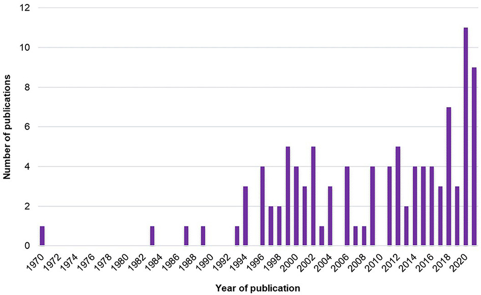 A total of 3,179 studies were identified via databases. Before screening, 357 duplicates and 159 studies were removed (e.g., language, chapters and books, congress papers, or theses). According to the exclusion criteria, 2,349 studies were excluded based on the title or the abstract. After verifying the records left in full, according to the pre-established eligibility criteria, 93 studies from databases were included in the systematic review. Moreover, 14 out of 25 studies identified via citation searching were included. Finally, a total of 107 studies were included in the systematic review. Results from the process for selecting the included articles (following the recommendations of Page et al., 2021) are described in the flowchart (Figure 1).