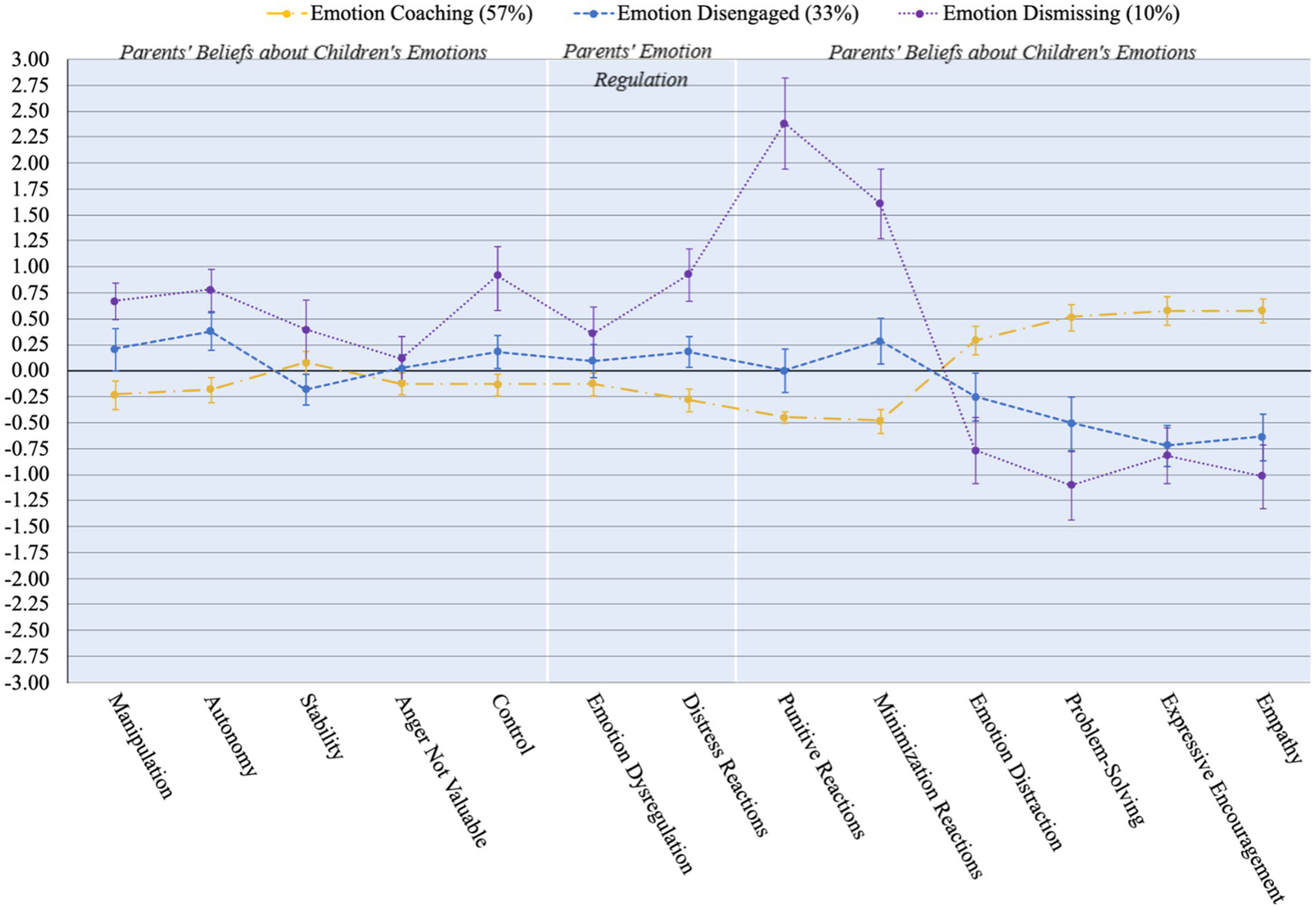 A three-profile model emerged characterizing parents by: (1) emotion coaching; (2) emotion dismissing; (3) emotion disengaged. There was strong support for construct validity and reliability.