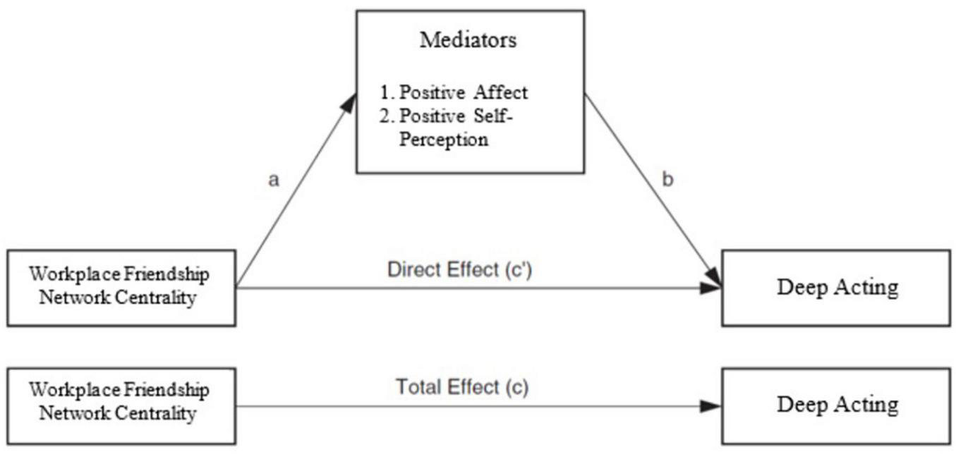Hypothesis 2b: The more positive affect a service employee experiences within an organization, the more likely the person engages in deep acting. Hypothesis 2c: Positive affect mediates the relationship between workplace friendship network centrality and deep acting.