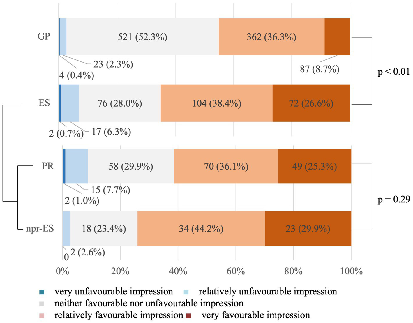 For both surveys on the GP and ESs, the survey items were identical as follows (Supplementary material 1). As basic attributes, the respondents were asked about their final education (7 categories), occupation (24 categories, including 6 categories for teachers and 8 categories for clergy), age (for the professional survey, age group), gender (4 categories), and religion (9 categories) (Q1–5).