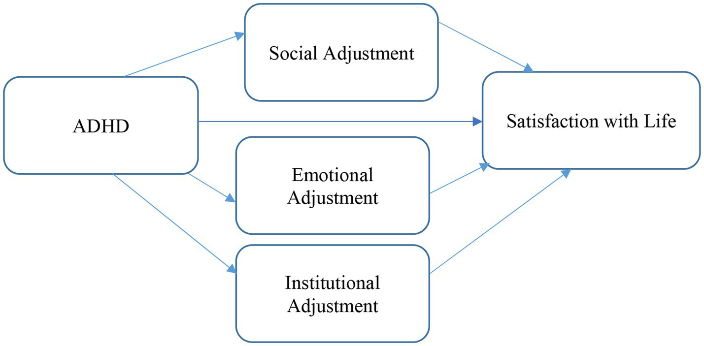 The obtained results revealed that having ADHD has an indirect effect on satisfaction with life. Students with ADHD reported having poor adjustments to higher education, and students who struggled to adjust were less satisfied with life. The three adjustment mediators had significant indirect effects.