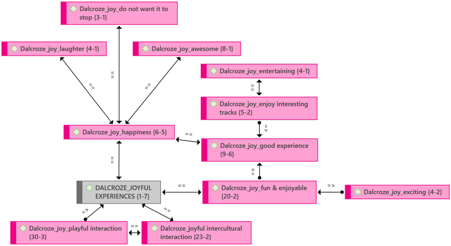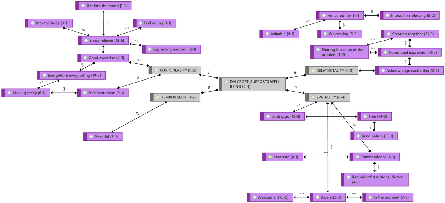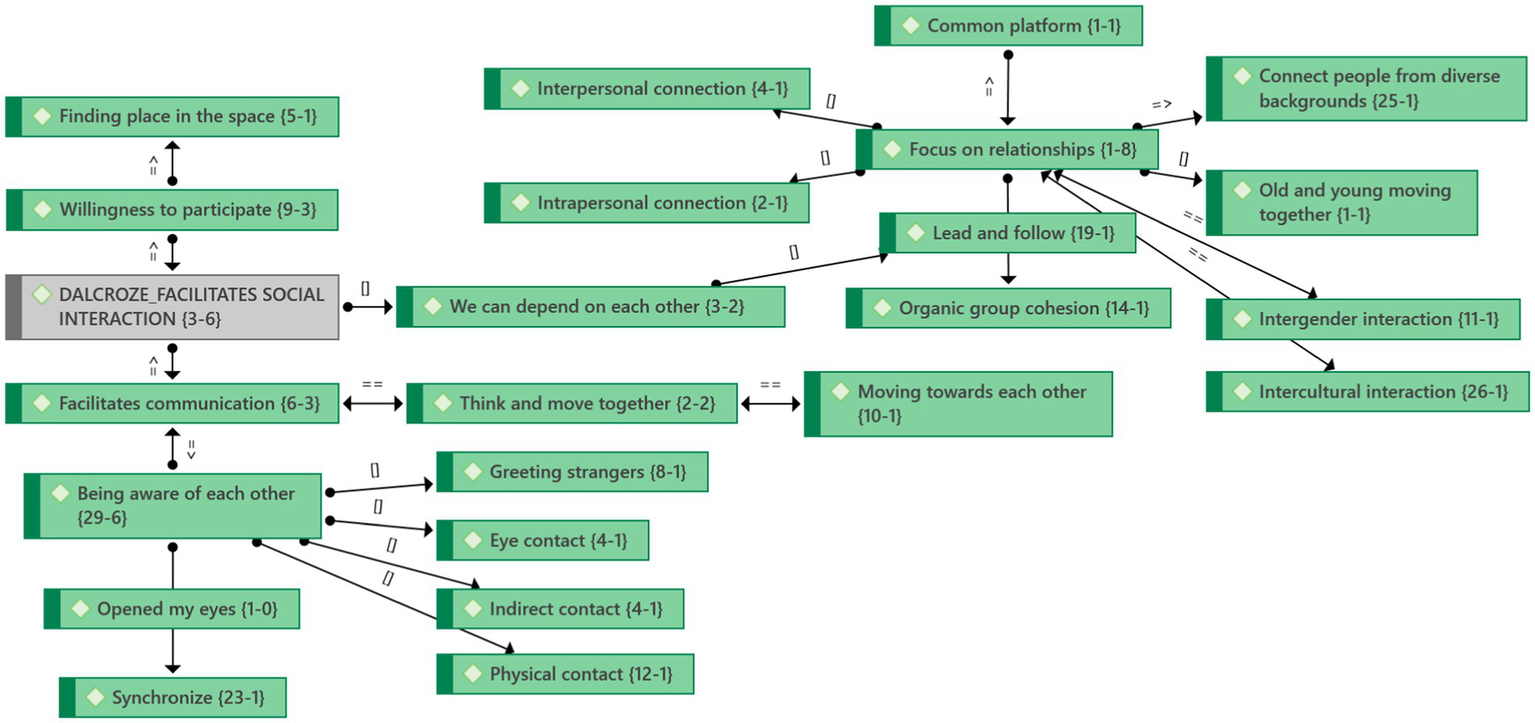 With the use of the ATLAS.ti qualitative data analysis software, we identified the following five themes from the interviews, focus group interviews, photos, videos, and observations during and after the Dalcroze-inspired workshop (Figure 2):