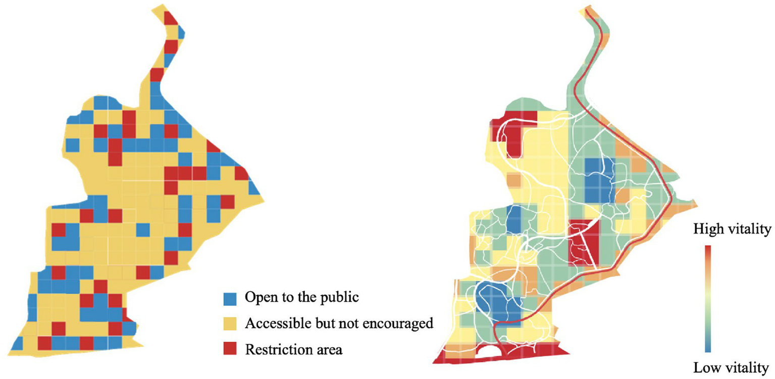 Onsite observation and mapping were also carried out by four trained surveyors to record activities at each measurement spot, represented as behavior vitality (V), used in this study to describe the diversity and intensity of activity. Behavior vitality was adopted from the concept of urban vitality which refers to the people and their activities throughout varied time schedules that can be observed in a specific space and is the product of the number and duration of various activities (Gehl, 1989). During the opening hours of Jiangjia Art Garden, surveyors ranked the behavior vitality of each spot at 2-h intervals from 8:00 to 17:00 (10:00, 12:00, 14:00 and 16:00) and also with a five-level Likert scale. The mean value of four surveyors’ ratings was then calculated as the results of behavior vitality for each spot.