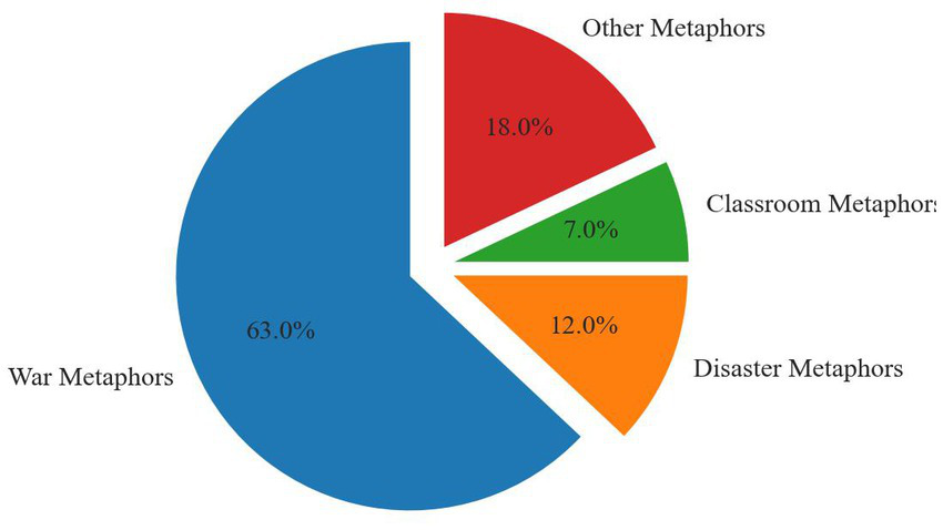 The selection of a source domain in a metaphorical expression conveys a purpose and expresses a demand. In English texts, there are many reflective discourses on war metaphors, and even several academic papers that discuss the legitimacy and legality of using war metaphors (Semino et al., 2017, 2018; Panzeri et al., 2021). This indicates that people are not simply accepting the metaphors assigned by social, historical, and cultural factors, but rather actively selecting metaphors that reflect their own experiences. To some extent, the metaphors we rely on for survival have become the metaphors we choose to live by. Some metaphors survive this selection and become content at different levels of metaphors (Kovecses, 2010; Kövecses, 2013, 2017, 2020), while others are actively rejected. For example, the zombie metaphor is prevalent in English texts, but it has not been widely adopted in Chinese texts. In contrast, the classroom metaphor is widely used in Chinese texts, but has not gained widespread acceptance in English texts.