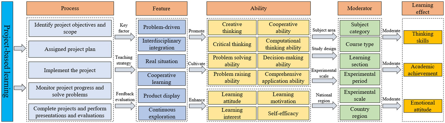 Since the purpose of this study was to explore the effect of project-based learning on learning effectiveness and to explore other factors that may moderate this effect. Therefore, based on relevant research findings on the effect of project-based integrated learning on learning effectiveness and the results of literature coding, the meta-analytic theoretical framework for this study, as shown in Figure 1.