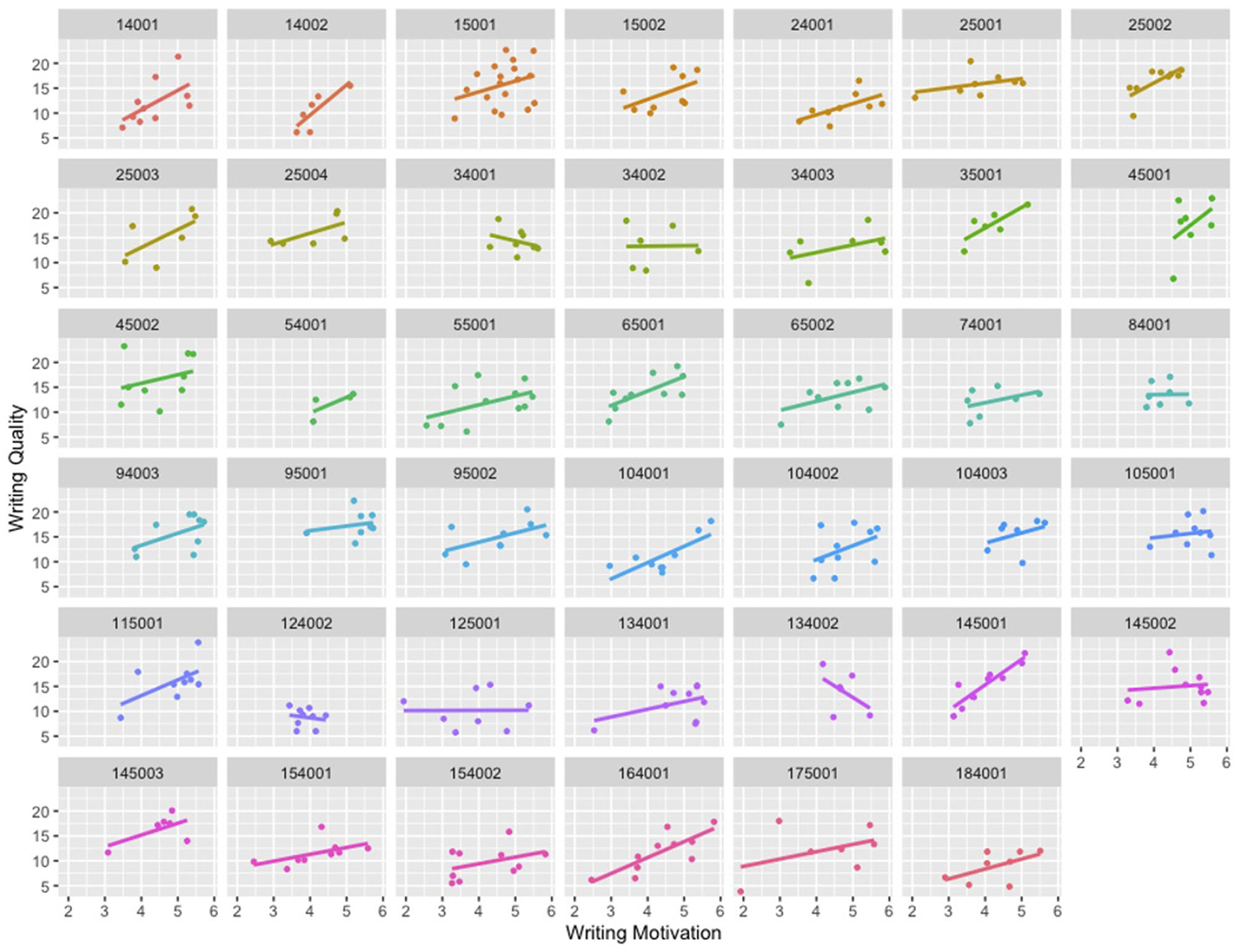 Hypothesis 1: Students' writing motivation relates to their writing quality. More specifically, we posited that the composite motivational scores of students, encompassing self-efficacy beliefs, task interest and value, and outcome and efficacy expectations, would exert a positive influence on their writing performance.