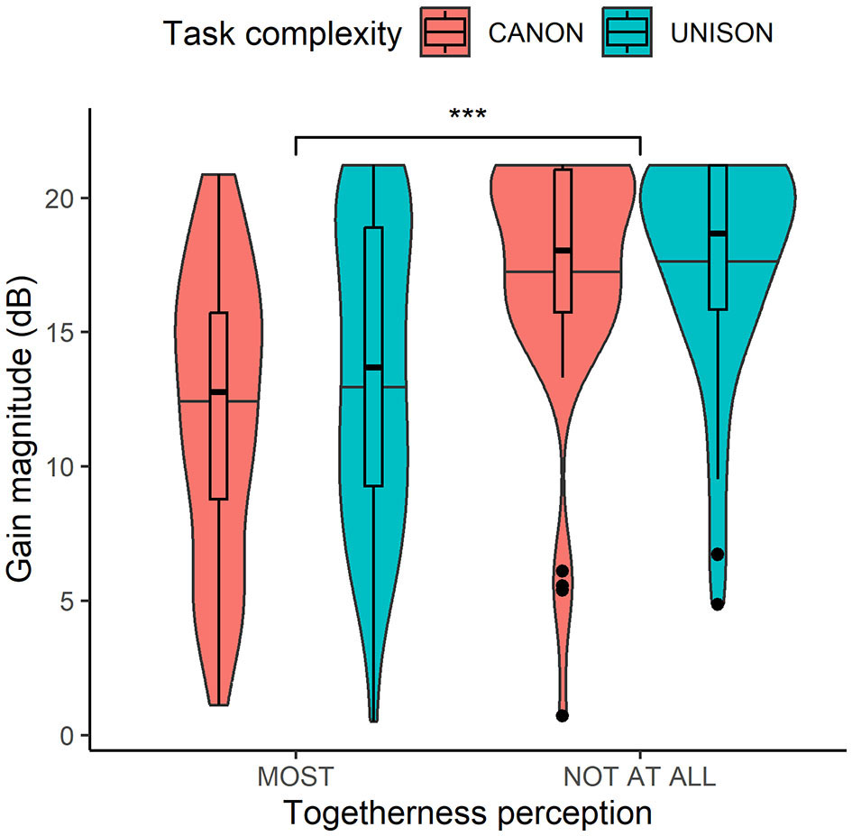 Voice match (i.e., most and not at all together) and task complexity (i.e., singing in unison vs. canon).
