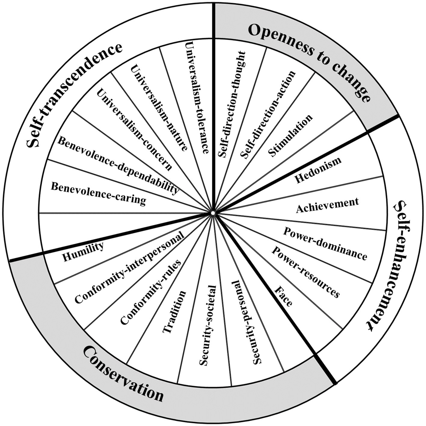 Circular motivational continuum of 19 values (Schwartz et al., 2012 [p. 669]).